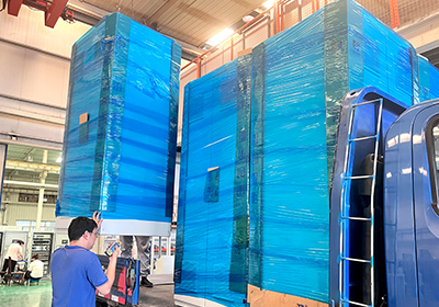 雷創電氣13臺仿威圖柜殼體生產完成,順利發車駛向客戶現場